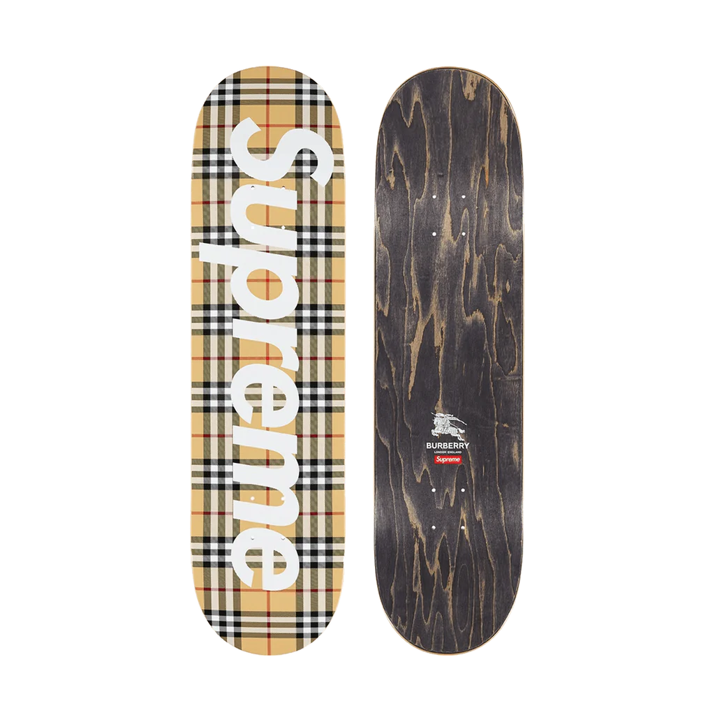 Perfetta per gli amanti dello skate e della moda, la Supreme Burberry Skate Brown unisce due mondi in un accessorio esclusivo e ricercato, pensato per chi vuole distinguersi con stile sia sulla tavola che nella vita di tutti i giorni.