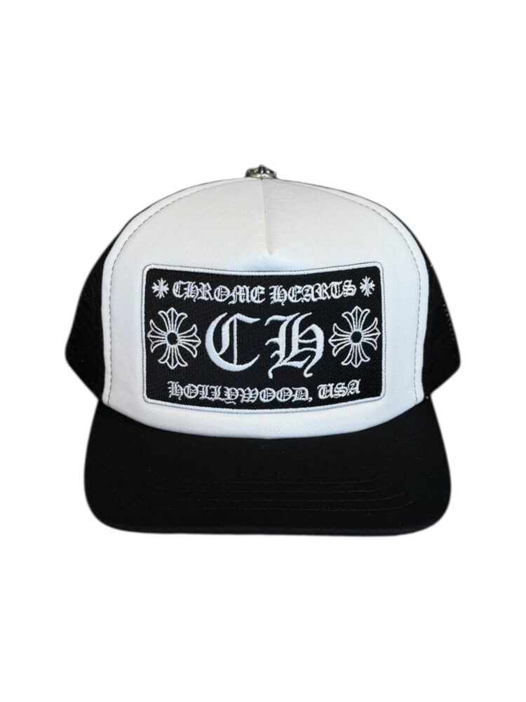 La Chrome Hearts CH Hollywood Trucker Hat Black/White è uno degli accessori più iconici del mondo Chrome Hearts perfetto esempio di come il brand riesca a fondere lusso artigianale e attitudine street in un unico pezzo.