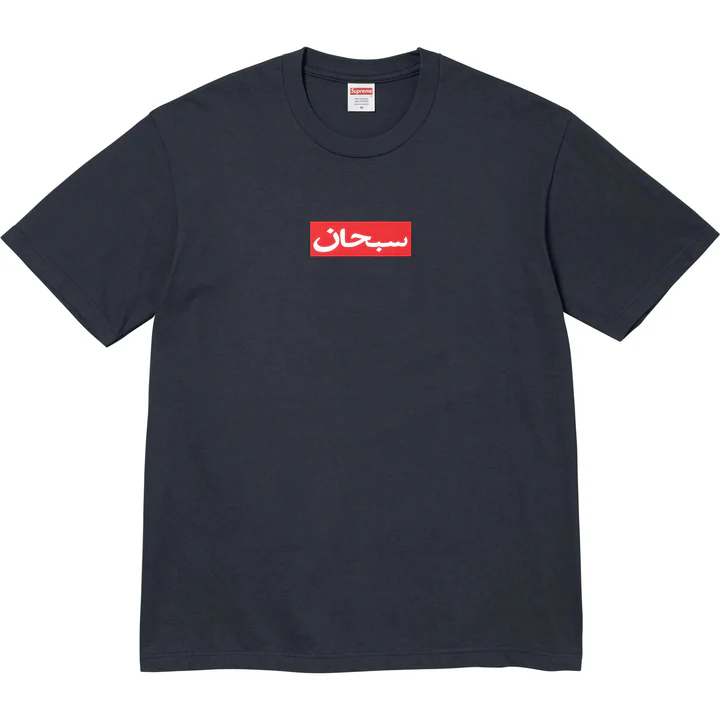 La Supreme Arabic Box Logo Tee Navy è molto più di una semplice t-shirt: