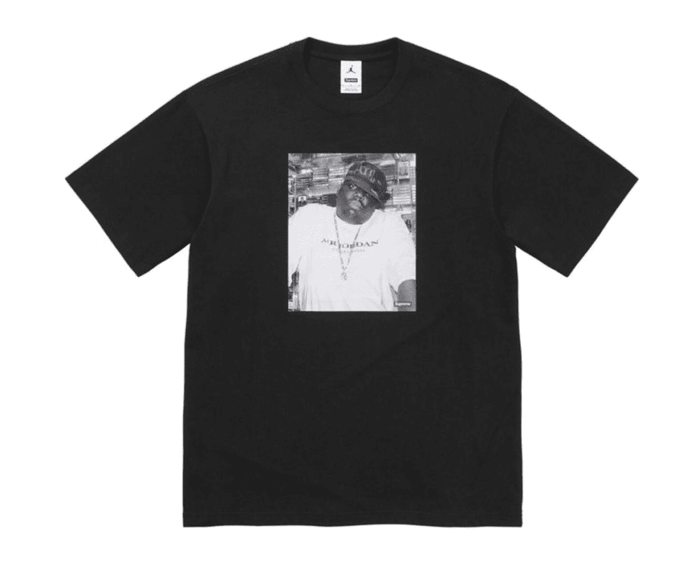 La Supreme Jordan Biggie Tee Black è una celebrazione unica che unisce il mondo dello sport e della musica con l’iconica estetica Supreme. Questa T-shirt in cotone premium presenta una stampa esclusiva ispirata a Biggie Smalls, omaggiando il leggendario rapper attraverso il filtro creativo di Supreme e Jordan Brand. Il design essenziale su sfondo nero esalta il contrasto della grafica, rendendola un capo d’impatto e facile da abbinare. Ideale per i fan della cultura hip-hop e dello streetwear, la Supreme Jordan Biggie Tee Black è più di una semplice maglietta: è un pezzo da collezione che rappresenta un’icona musicale e il legame con la cultura urbana contemporanea.