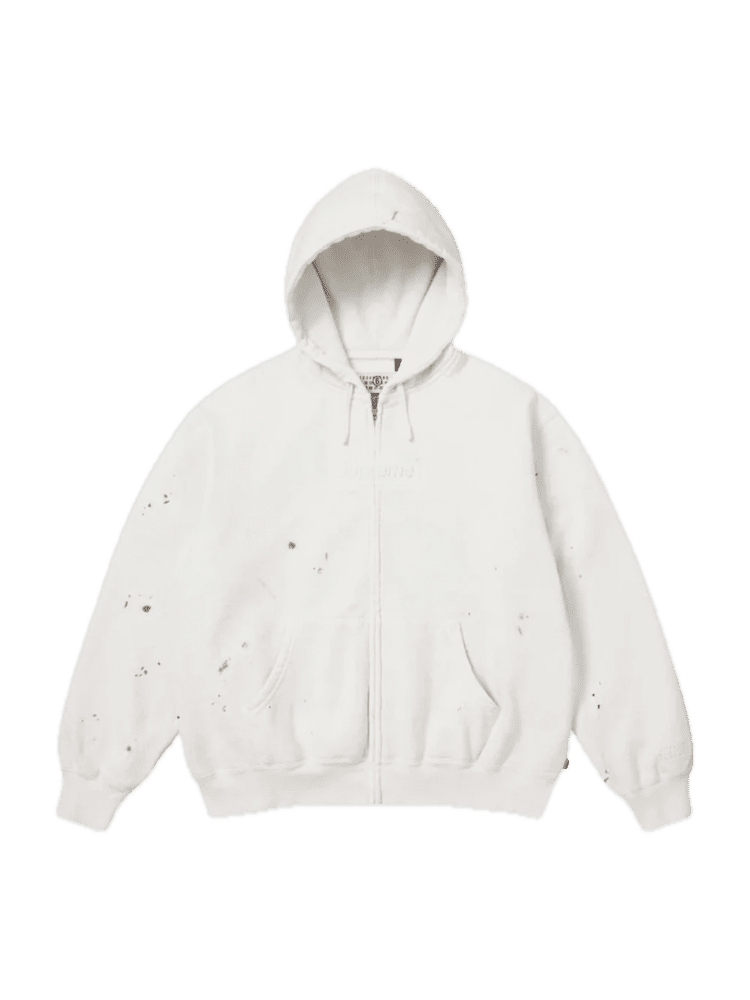 La Supreme MM6 Maison Margiela Box Logo Zip Up Hooded Sweatshirt White è pensata per chi ama i pezzi che fanno dialogare mondi diversi: pulita, concettuale, iconica.