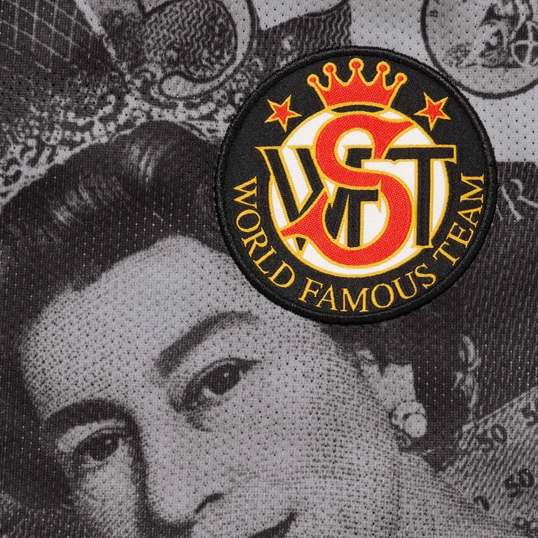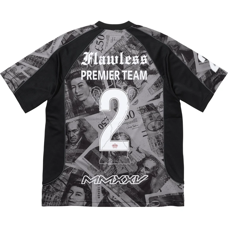 La Supreme Pounds Soccer Jersey Black è una maglia che unisce estetica calcistica rétro e grafica d’impatto in puro stile streetwear. Parte delle proposte più audaci della stagione, questa jersey reinterpreta il classico design da campo con un linguaggio visivo diretto e provocatorio.