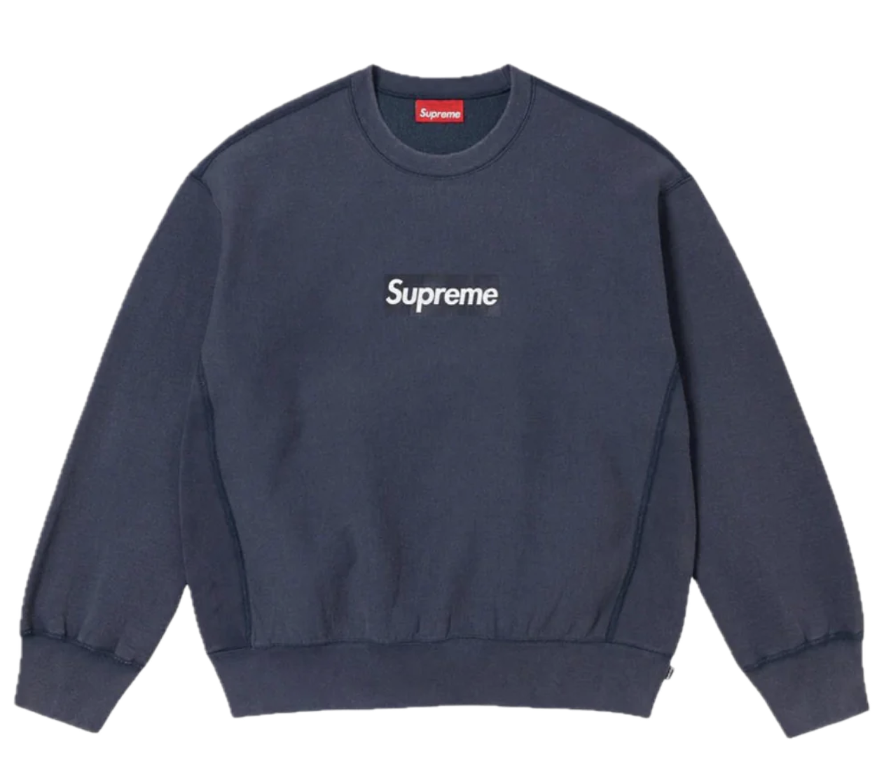 La Supreme Washed Box Logo Crewneck Navy è un capo essenziale per chi ama lo streetwear autentico con un tocco vintage. Questa felpa girocollo ripropone il classico Box Logo Supreme, ma con un effetto washed, che dona un aspetto leggermente consumato e vissuto, perfetto per un look rilassato e senza tempo.