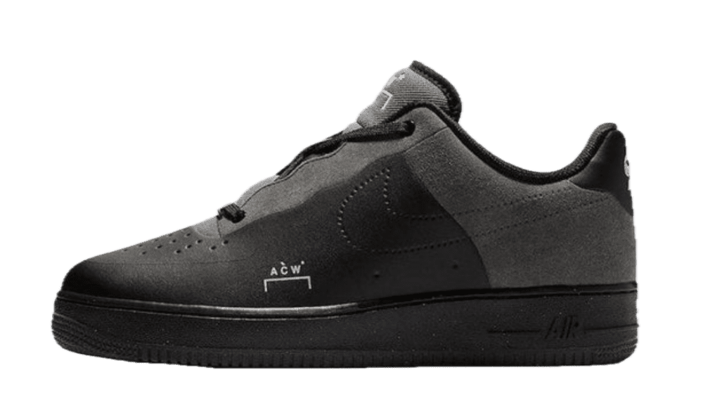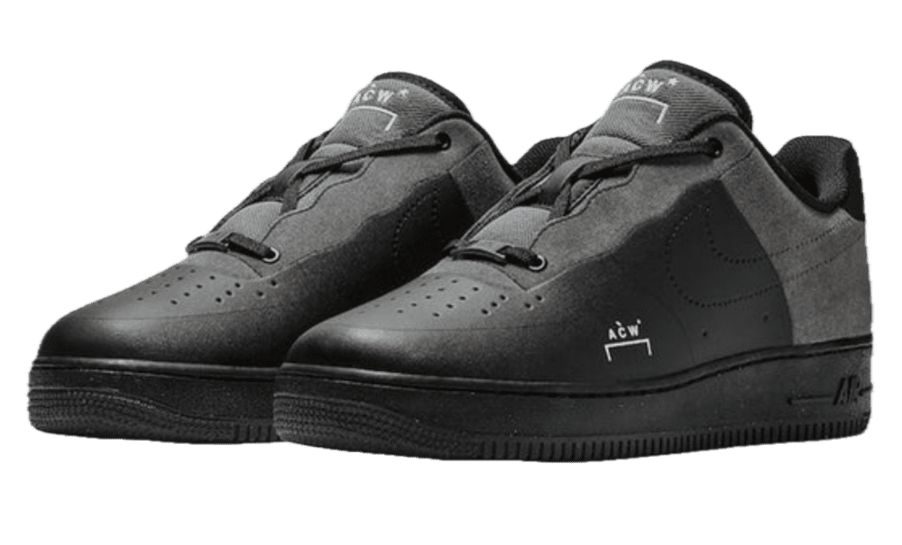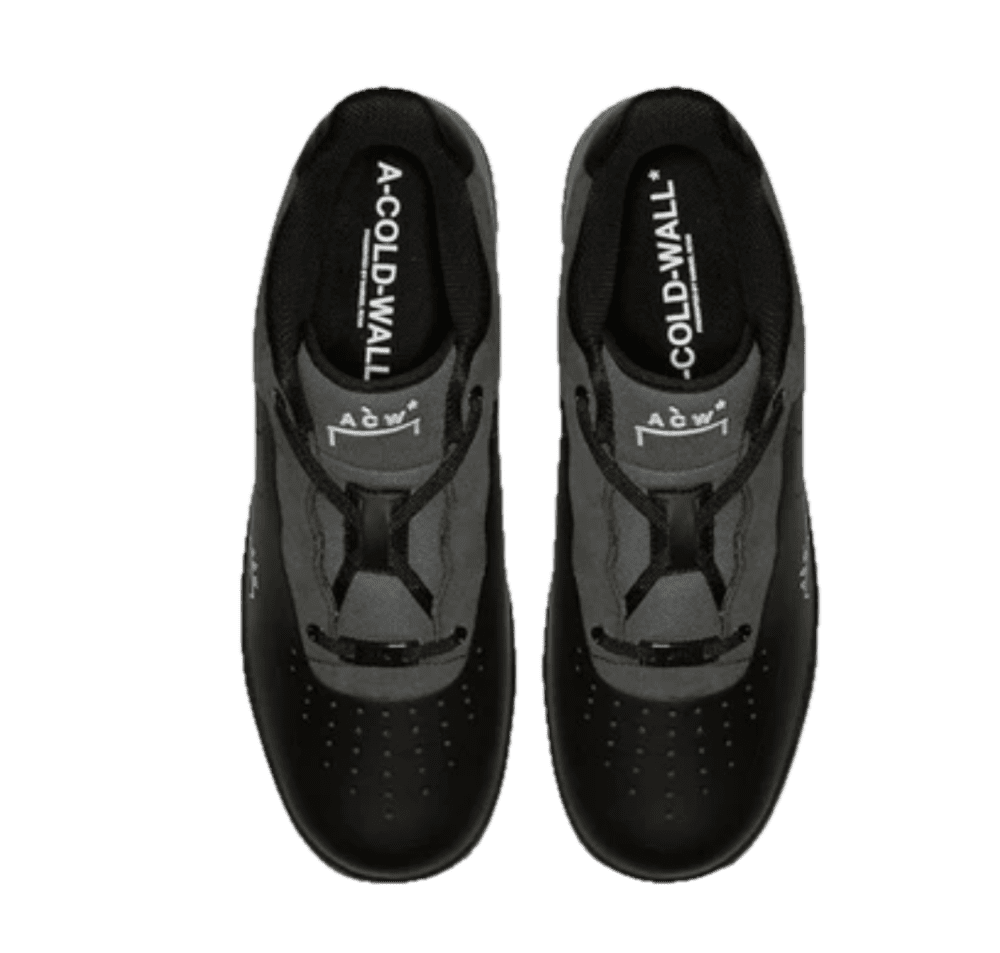 La tomaia è realizzata in una combinazione di Flyleather nera — un materiale sostenibile composto per almeno il 50% da fibre di pelle riciclata — e pannelli sintetici, per un look monocromatico dall’aspetto opaco e tecnico. Le cuciture sono ridotte al minimo, mentre gli occhielli perforati sostituiscono quelli tradizionali per un’estetica più pulita e funzionale. Il branding ACW* è inciso lateralmente in modo discreto, completato da una piccola etichetta tono su tono sul tallone.