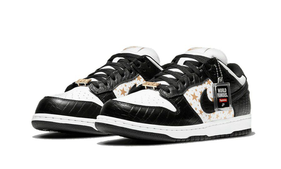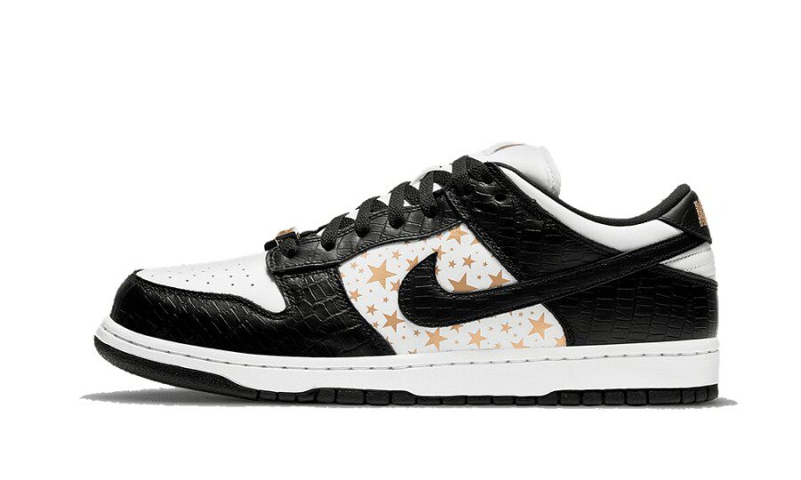 Le Nike SB Dunk Low Supreme Stars Black rappresentano uno dei crossover più iconici tra lo streetwear e il mondo dello skate. Frutto della storica collaborazione tra Nike SB e Supreme, questo modello riprende lo spirito delle mitiche Dunk High del 2003, reinterpretandolo in una silhouette low-top dal carattere deciso. Lanciata nel 2021 come parte di un pack esclusivo, questa colorazione Black si distingue per il perfetto equilibrio tra lusso e attitudine urban.