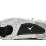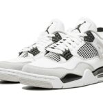 La tomaia è realizzata in pelle premium bianca, che dona luminosità e struttura alla silhouette, mentre gli inserti in nero e grigio creano un contrasto deciso ma estremamente equilibrato. I pannelli in suede grigio chiaro sulla punta aggiungono profondità e qualità al design, mentre la classica gabbia laterale in mesh e i supporti in TPU mantengono l’identità tecnica della Jordan 4. Il branding Jumpman completa il look con uno stile pulito e moderno.