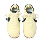 La tomaia, in mesh tecnico e pelle premium, si distingue per la costruzione affusolata e ultraleggera, con una tonalità cremosa e calda che richiama la sabbia e i paesaggi naturali. Il design asimmetrico dello Swoosh miniaturizzato in metallo e l’assenza di cuciture a vista conferiscono alla sneaker un’estetica scultorea e sofisticata. L’ispirazione alla Moon Shoe originale del 1972 si ritrova nella suola seghettata waffle, reinterpretata in chiave moderna con materiali flessibili e linee fluide.